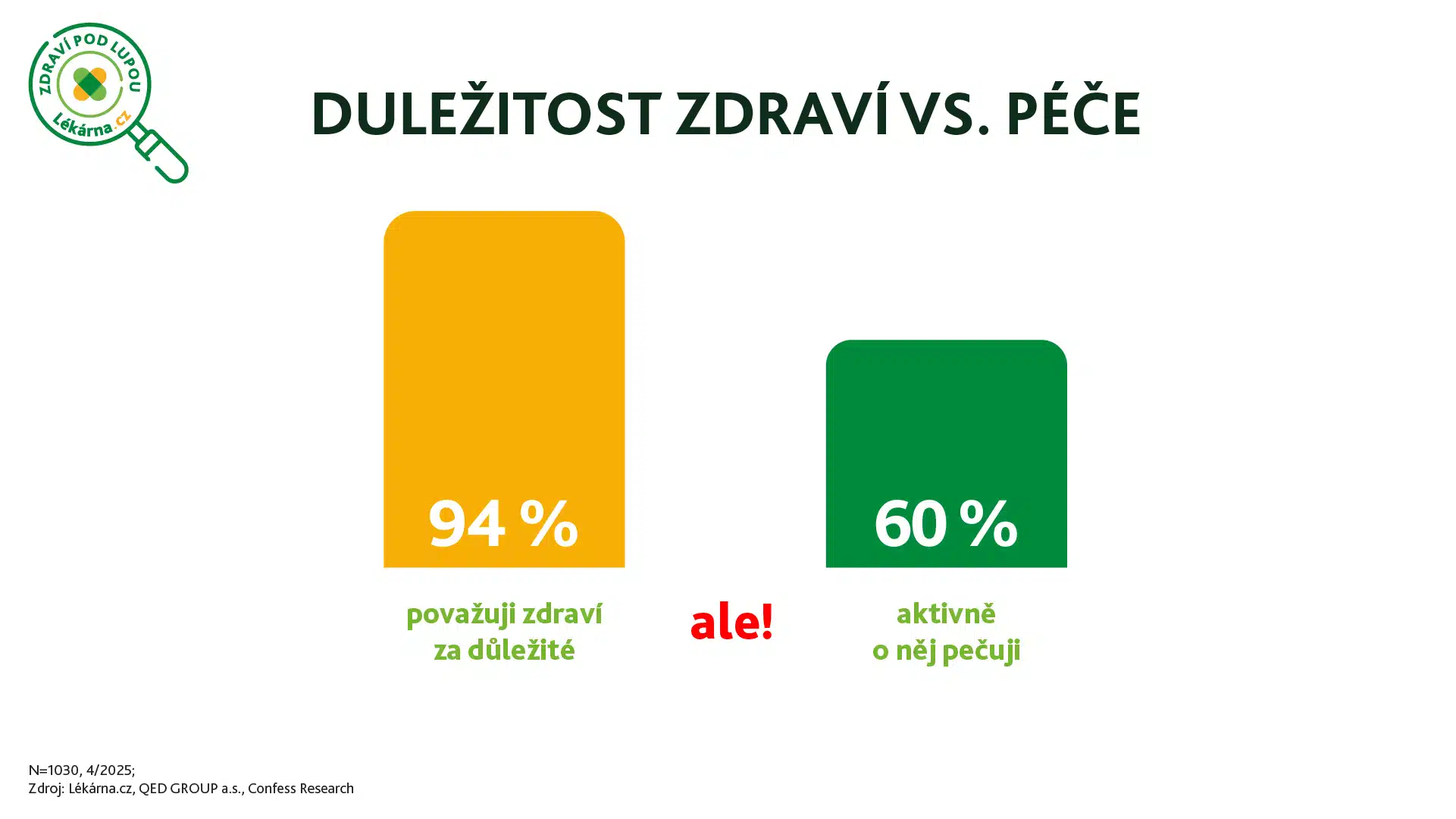 94 % považuje zdraví za důležité, ale jen 60 % o něj opravdu pečuje.