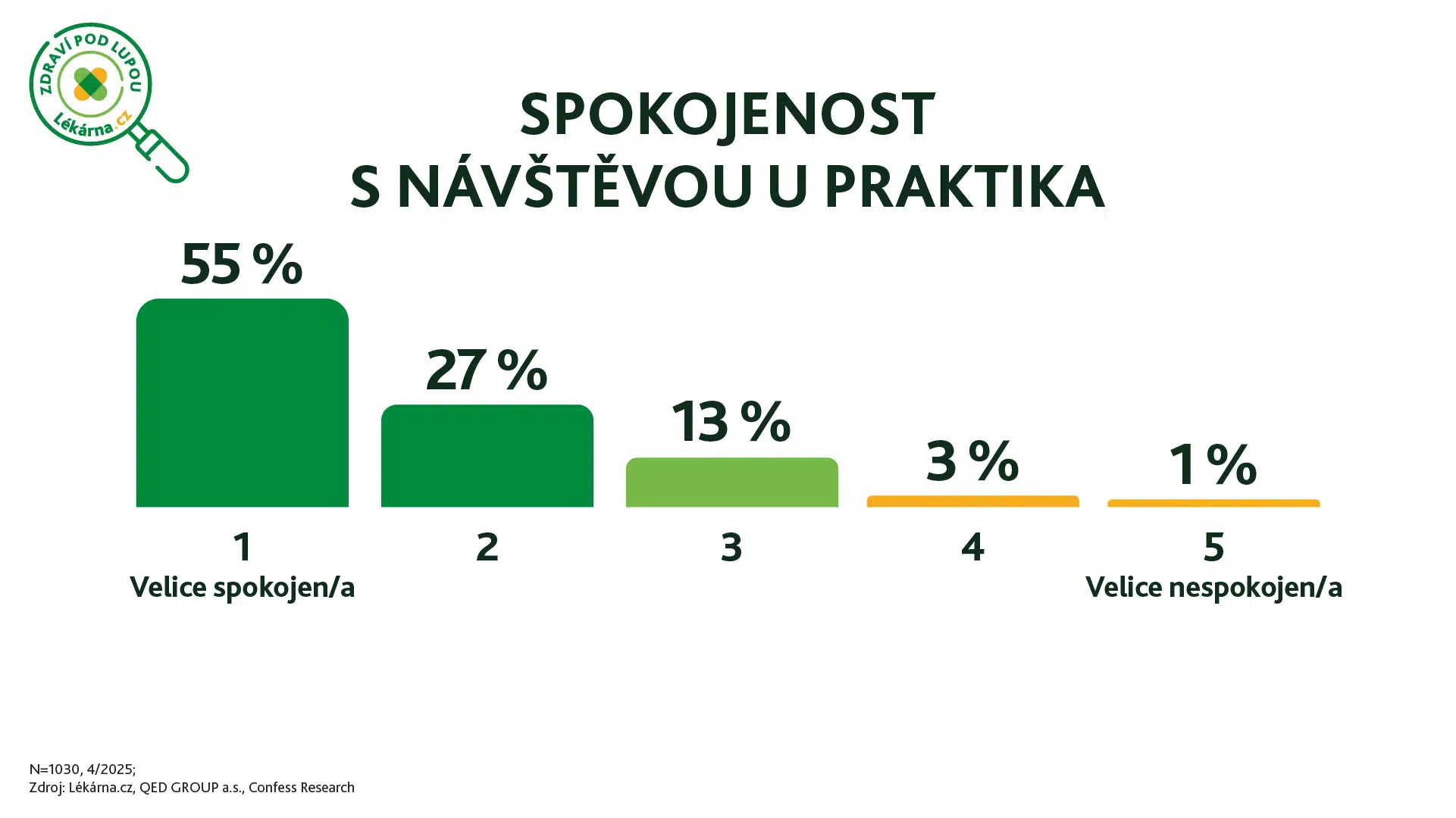 Více než polovina Čechů je s návštěvou svého praktického lékaře velmi spokojena, nespokojených je jen minimum.